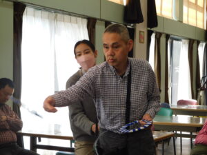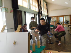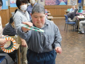 この日は、福祉サービスセンターおおやの皆さんと一緒に輪投げ大会。
