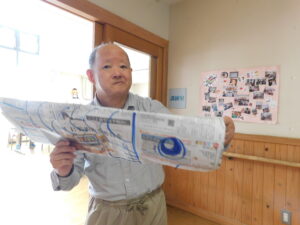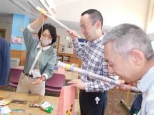 新聞紙で作ったこいのぼりを飛ばして距離を競います!