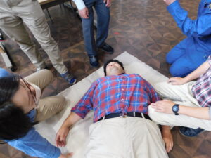 実際に職員が倒れた人の役をして、