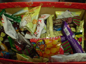 袋の中に、どんどんお菓子を入れていきます!