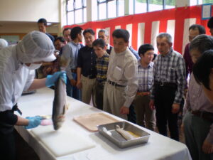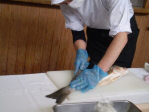 実際にスズキを捌くところを見ていた皆は、