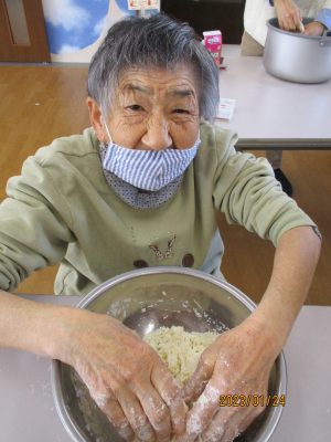 うどんを伸ばすのも切るのも利用者さん&職員の共同作業です。