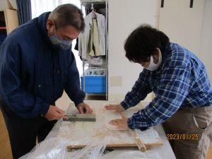 新年会はうどん打ちから始まりました。(昨夜のうちにうどんをこねて寝かせておきました)