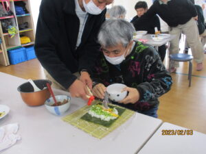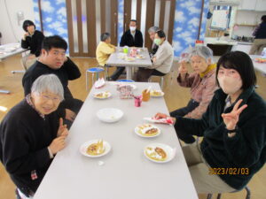 2月3日の節分の日、みんなで昼食作りに取り組みました。