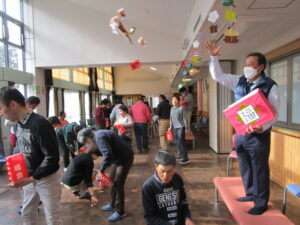 恒例のがらまきです♪「福は内~♪」「福は内~♪」ど~んなお菓子が拾えたかな?
