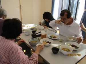 午後はゲームで体を動かし、お腹が空いたところでおやつにおしるこです。