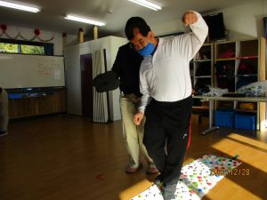 最初に 職員と利用者さんとの ”二人三脚ゲーム”