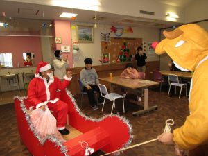 1人1人にプレゼントを配り、お役目が終えるとトナカイに引かれて帰っていきました♪