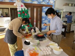 ゲームの後は、みんなお待ちかね おやつ作りです ( *´艸`)