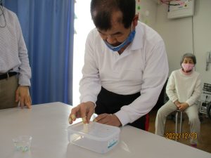 午後はゲームで体を動かし、お腹が空いたところでおやつにおしるこです。