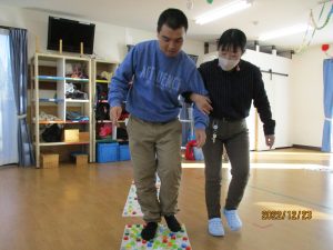 最初に 職員と利用者さんとの ”二人三脚ゲーム”