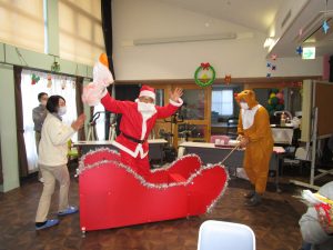 1人1人にプレゼントを配り、お役目が終えるとトナカイに引かれて帰っていきました♪