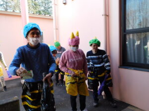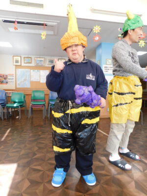 年男は衣装を着て準備万端です(#^^#) オニも準備OK👌