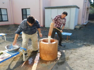 晴天に恵まれ今年も年収めの ”もちつき” が始まりました。
