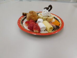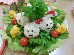 ゆきだるまポテトサラダ...少し溶けかけていましたね💦 フルーツ盛り合わせ🍉🍊