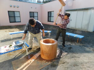 晴天に恵まれ今年も年収めの ”もちつき” が始まりました。