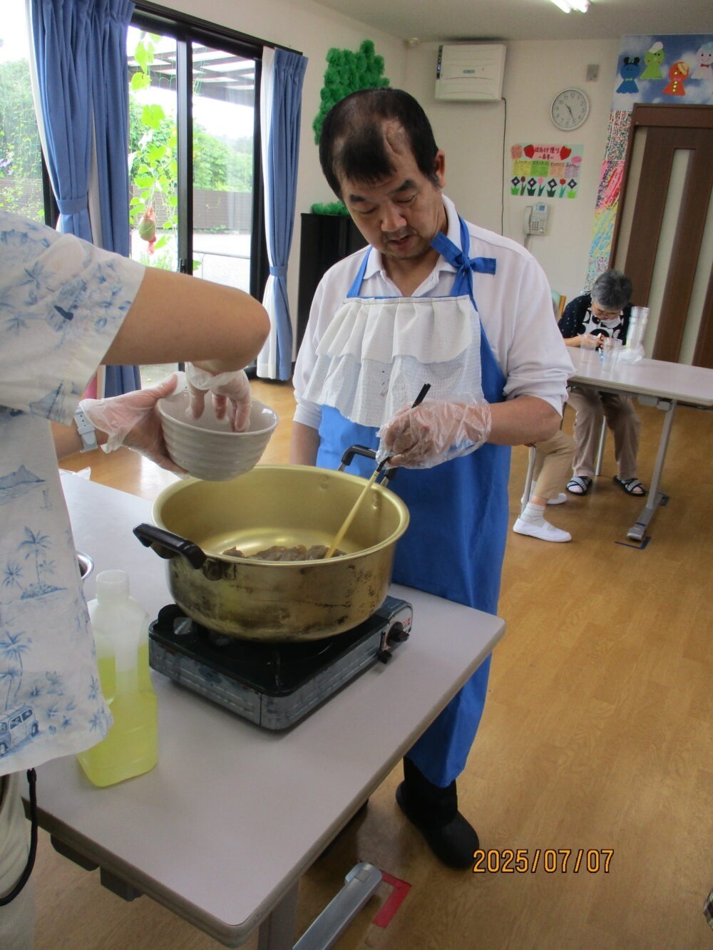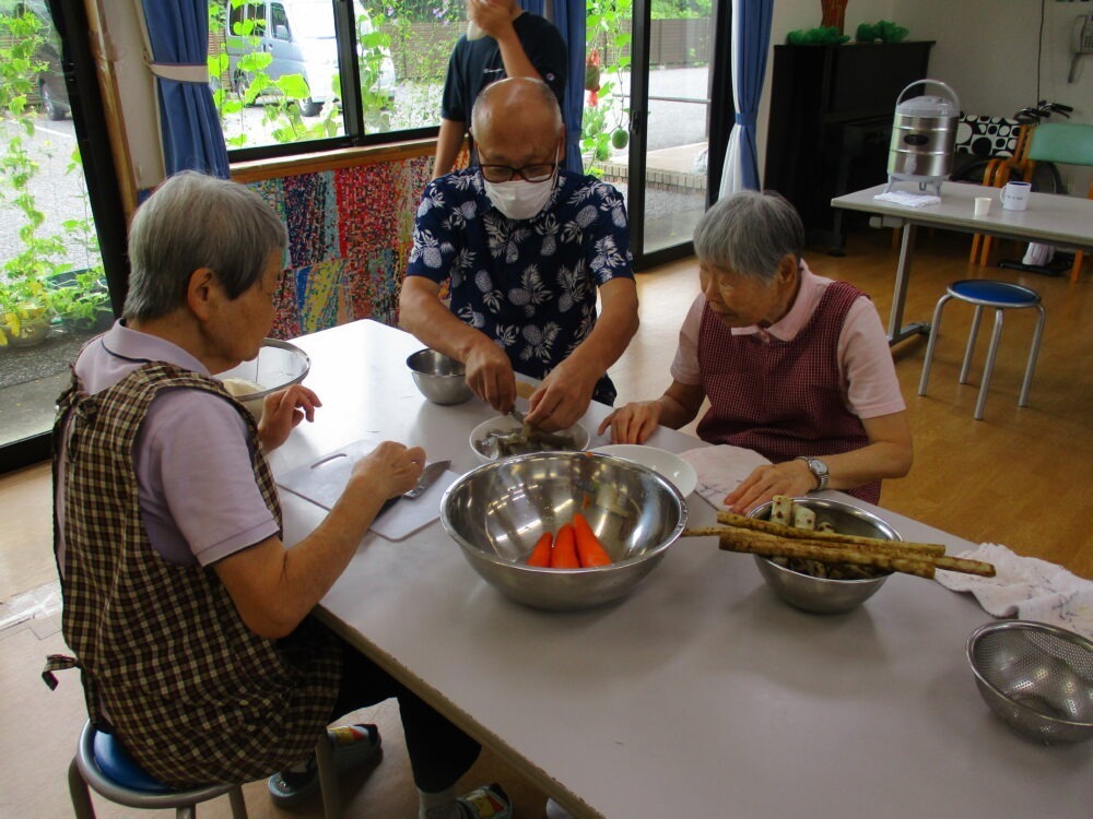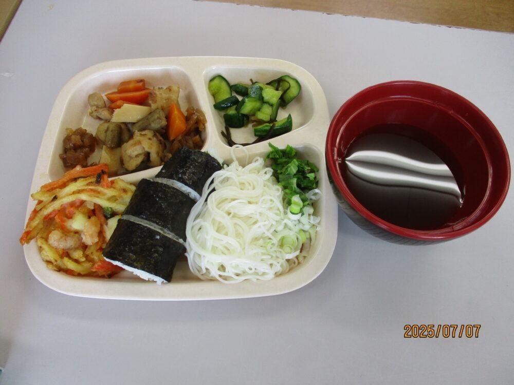 今回のメニューは「七夕そうめん」・「太巻きのセット」・「キュウリ🥒の叩き」・「煮しめ」・「かき揚げ」