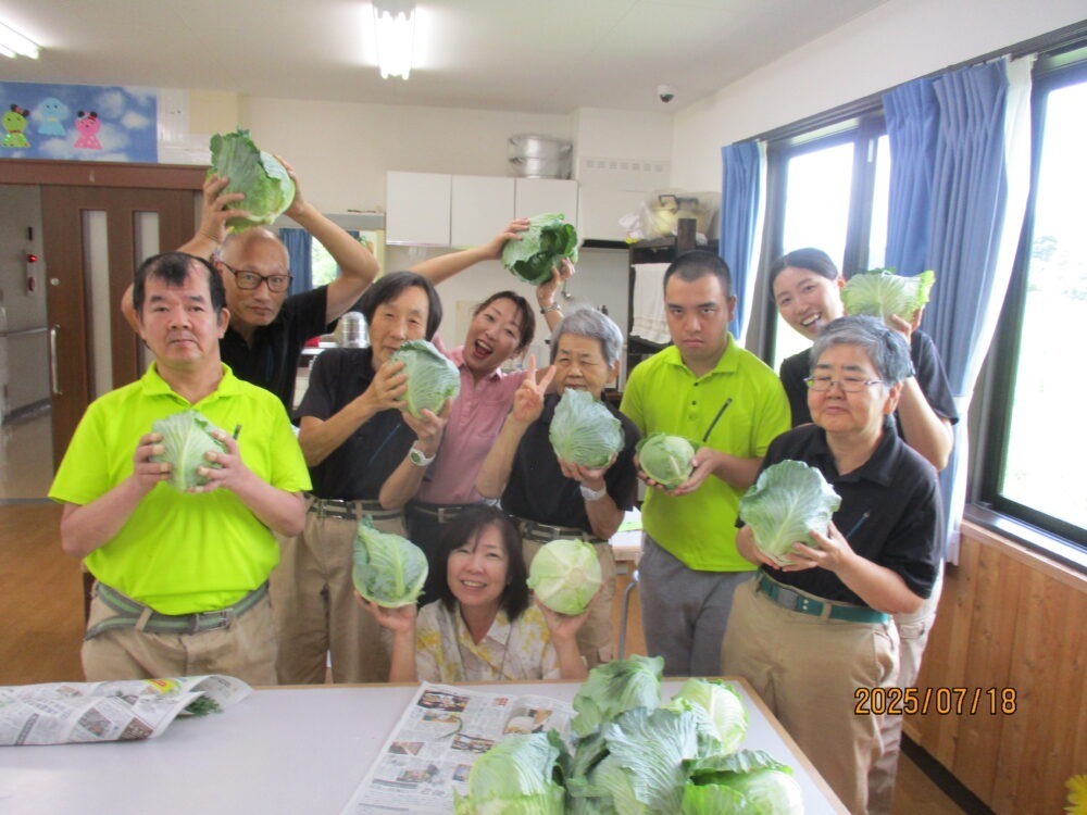 ☆まずはキャベツです。今年は豊作で、やわらかくて甘いキャベツが採れました‼