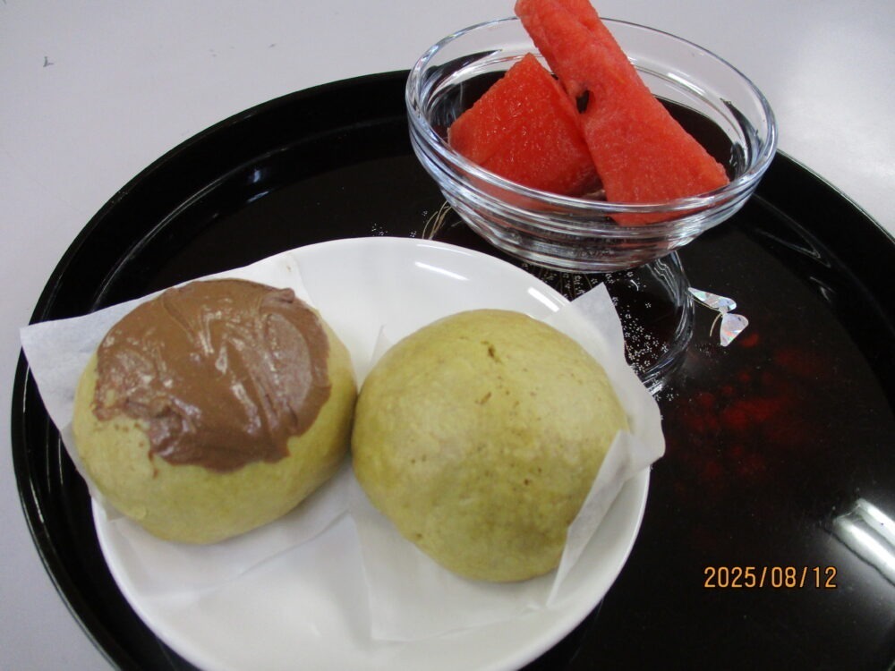 おやつは「あんクリームサンド」に「紅茶ゼリージュース」を美味しく頂きました(*^^)v