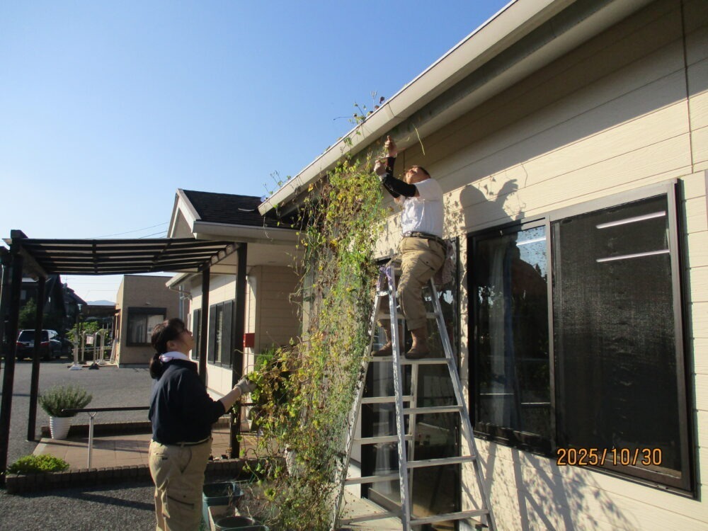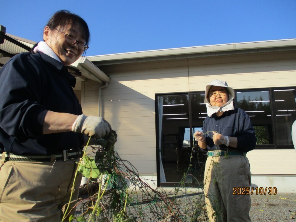 暑い夏も終わり、グリーンカーテンの片付けです。