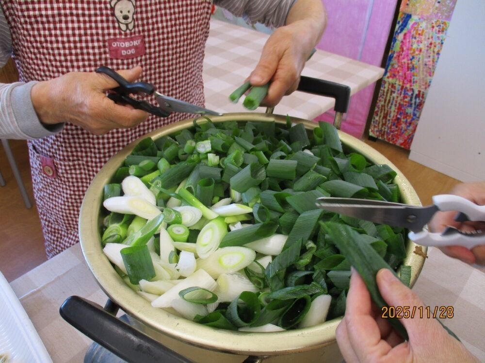 もはや恒例となったみなさんでの昼食作り。