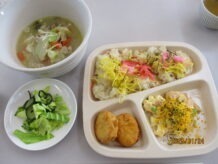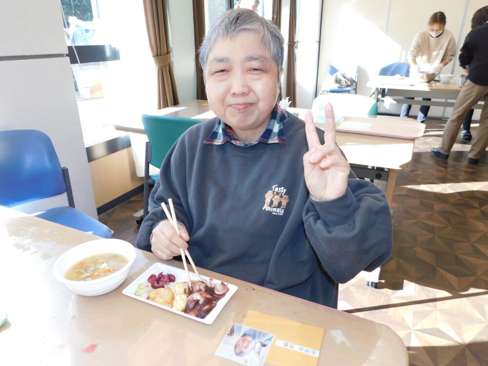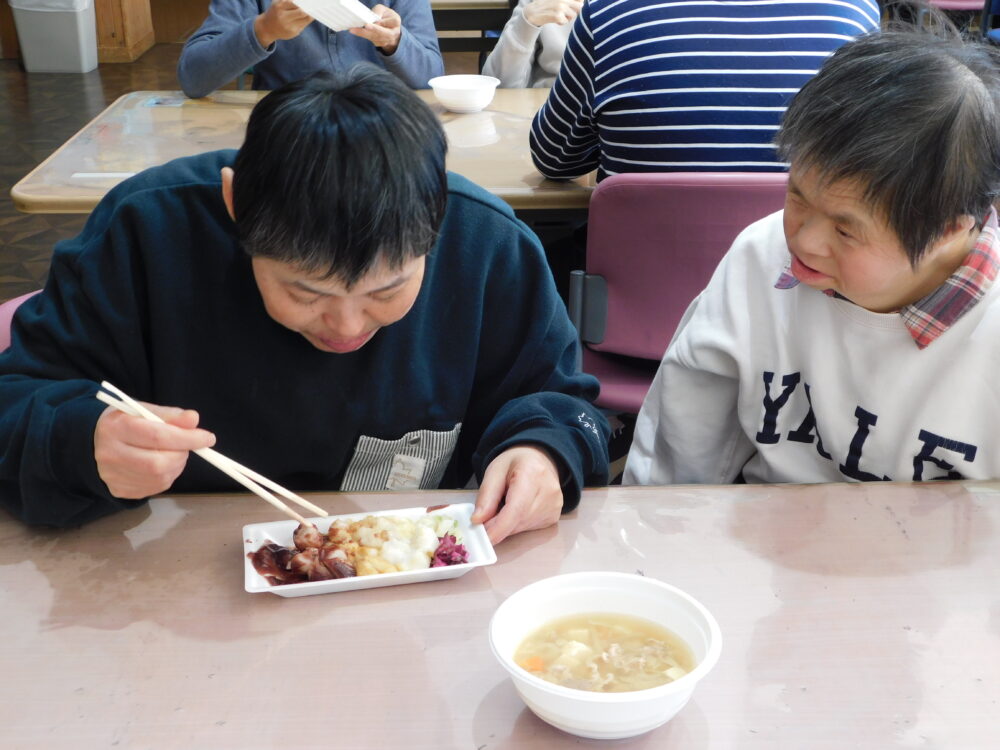 恒例の恵方巻に利用者さん特製の塩もみ。