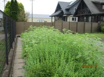 花壇には去年から育てたハーブがモリモリに成っています。