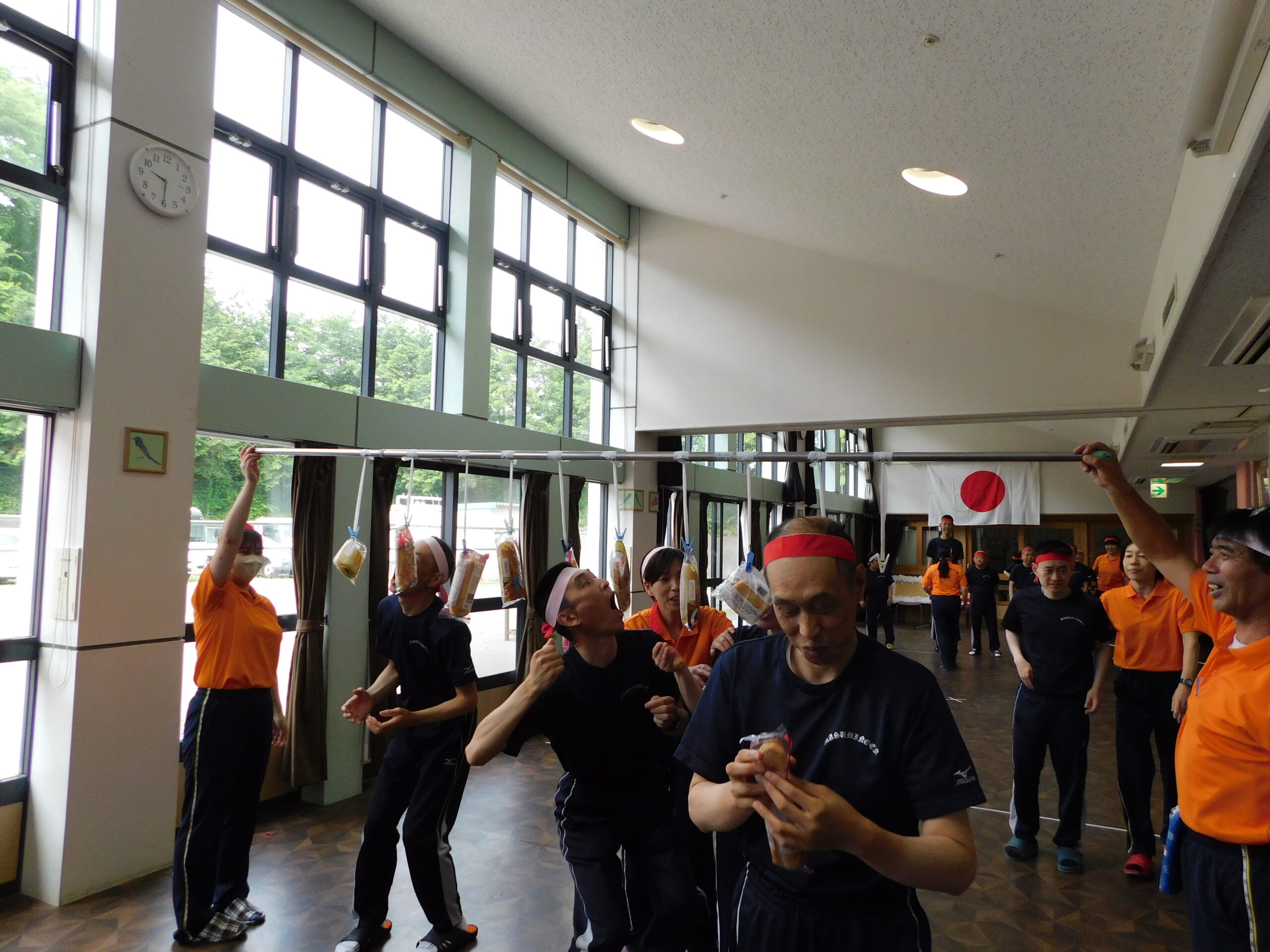 最初の競技は、パン食い競争!🍞